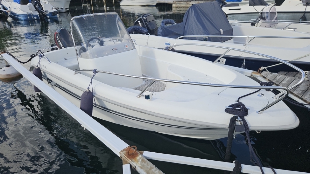 Vi har nu möjligheten att förmedla denna fina Flipper 600 sc. Denna modellen har fått mycket goda betyga från båttester runt om. I ett av inläggen skrev dom följande: Flippers nya båtserie är så bra att den tvingar konkurrenterna till allmän skärpning. Båten går mycket behagligt i sjön och kan jämföras med dom större modellerna. Denna är även utrustad med både dynor till solbädd och kapell.