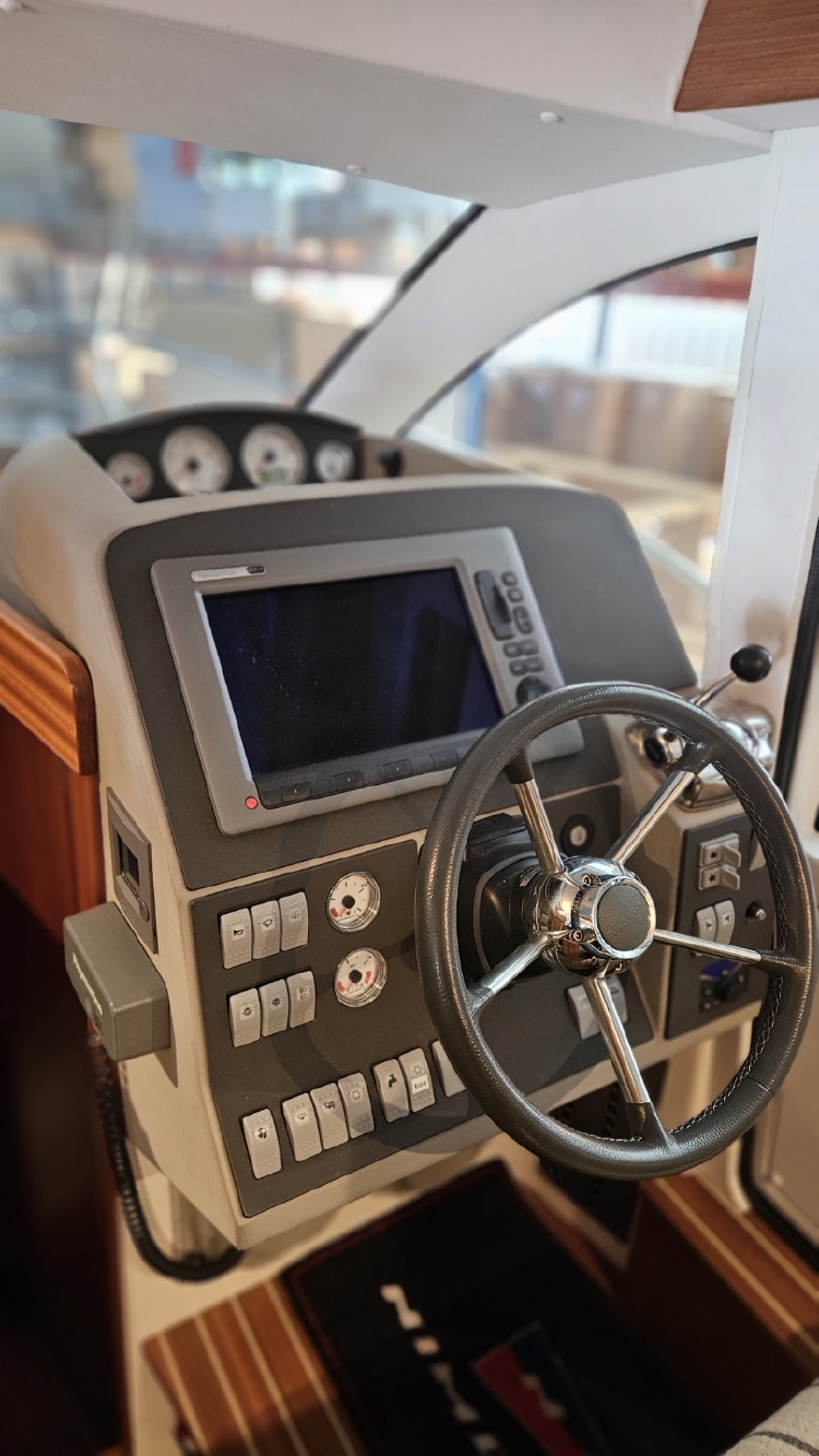 Nimbus är kända för sin fina kvalité och goda och fina sjögång, Detta gäller även denna modellen som tar dig fram med Volvo pentas D4 på 300 hk diesel och Axel drift. Detta är en modern Cabin Cruiser som passar lika bra soliga dagar som när regnet faller. Dom stora fönstrena gör att det blir ett härligt ljusinsläpp och bra sikt. Detta är en mycket välutrustad båt som ser till att man kan njuta av härliga dagar på havet.