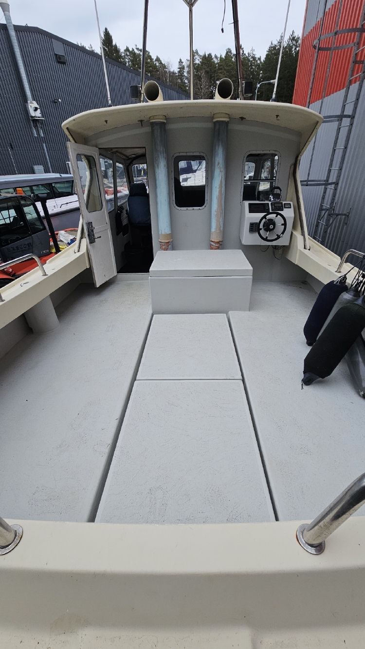Vi har nu möjligheten att förmedla denna Nordsjö 33 ( Lochin 33 ) med en Volvo penta D9 575hk Diesel som endast gått 814 tim. Här får man en rejäl arbetsbåt med ett väl tilltaget akterdäck. Båten är perfekt för hummerfiske och djuphavsfiske, Dubbelkommando vilket innebär att det är även styrning på akterdäck. Båten är ej färdigställd i hytt och ruffe men full körbar.