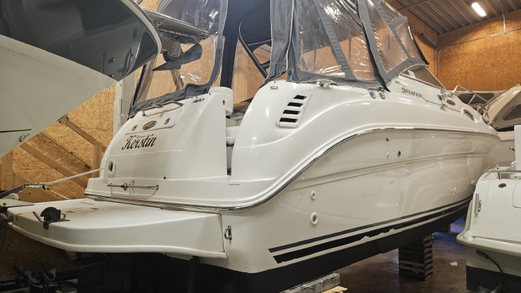 Vi har nu möjlighet att förmedla denna klassiska Searay Sundancer 260 från 2001. Denna båten har en rad fina uppdateringar så som nya limpor och avgasknän och omklädda dynor i sittbrunnen. Här får man en trevlig modell som har en härlig midcabin så man sover gott 2+2 i båten.