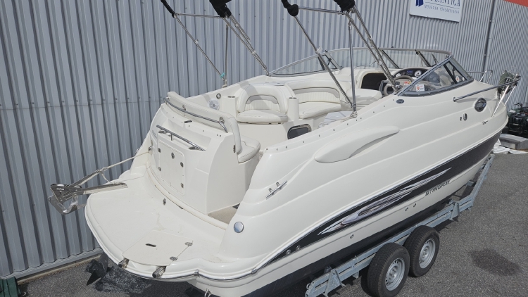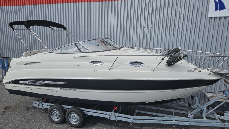 Vi har nu möjligheten att förmedla denna tuffa daycruiser från kända Stingray boats som erbjuder goda utrymmen och trevlig körkomfort. Den väl tilltagna ruffen gör att man får en härlig luftig känsla och man sover gott 4-5 personer. Den Starka Volvo penta D3:a som sitter i båten göra att man går enkelt upp i plan och marschar fint i 21-22 knop utan några större bränslekostnader.